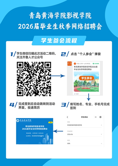 为切实做好我院毕业生就业工作,搭建好毕业生与用人单位之间的线上招聘平台,特联合齐鲁人才在线开展招聘活动。影视学院2026届毕业生751人,其中本科生360人,含影视摄影与制作专业129人,戏剧影视美术设计专业34人,动画专业107人,航空服务与艺术管理专业90人;专科生391人,含播音与主持专业113人,动漫设计专业147人,戏剧影视表演专业131人。本次招聘会主要依托互联网进行,不收取任何费用,现将有关事项通知如下: