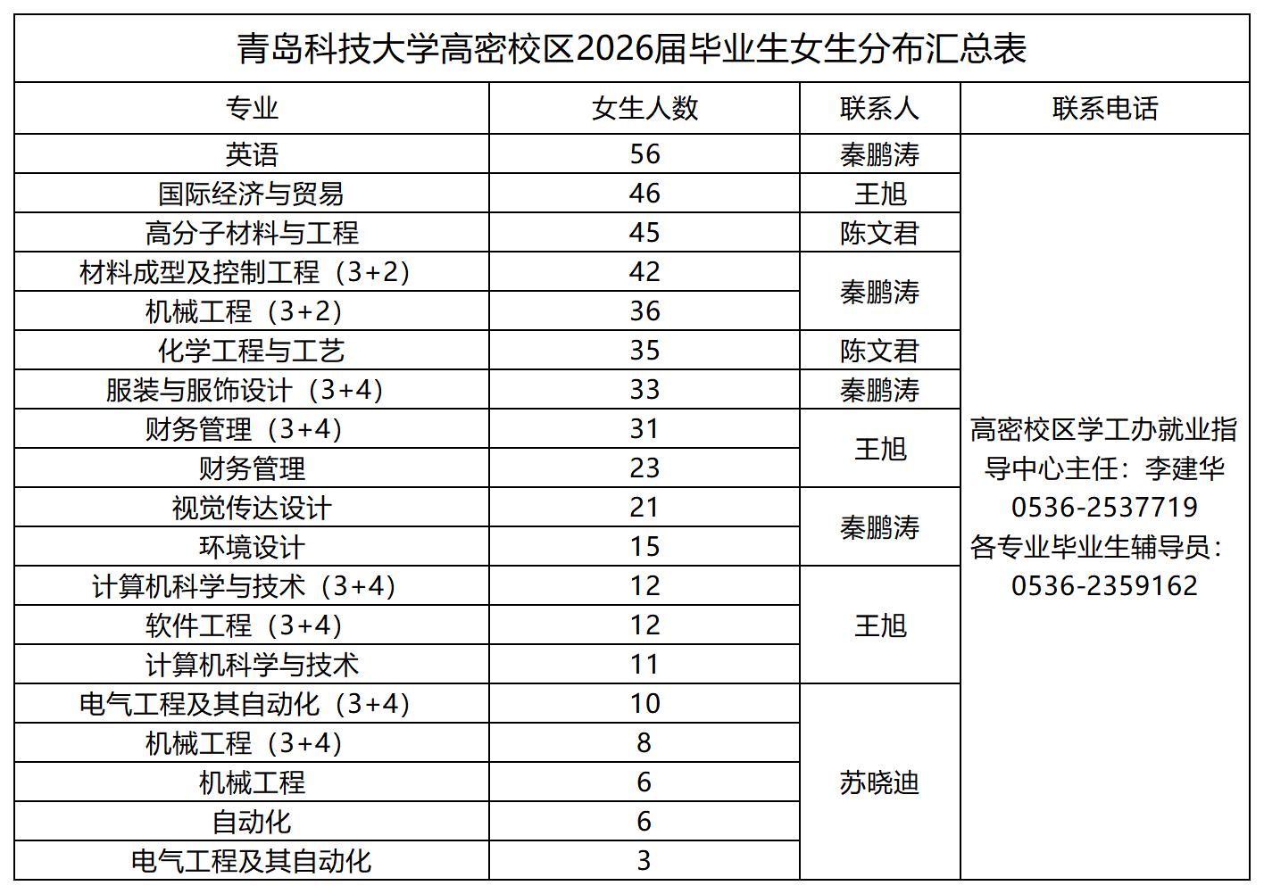 衷心感谢您对青岛科技大学高密校区就业工作的大力支持!